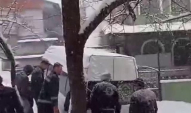 Zonguldak'ta iş makinesinin çarptığı öğrenci servisi metrelerce kayıp duvara çarptı