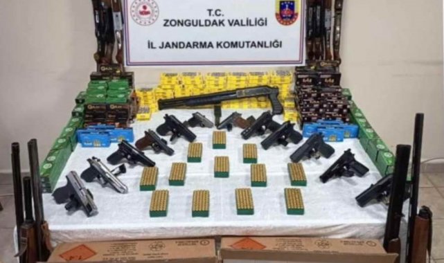 Zonguldak İl Jandarma Komutanlığı, silah ve mühimmat kaçakçılarına yönelik Çaycuma ilçesinde geniş çaplı bir operasyon düzenledi. Adli makamlardan alınan arama kararı doğrultusunda 7 şahsa ait 9 ayrı adrese eş zamanlı baskın yapıldı. Adreslerde yapılan aramalarda adeta bir cephanelik ortaya çıkarıldı. Operasyonda 1 adet silah imalathanesi, 18 adet ruhsatsız tabanca, 12 adet av tüfeği, 37 adet tabanca gövdesi, 54 adet tabanca şarjörü, 31 bin 931 adet muhtelif tabanca ve av tüfeği fişeği, 1 kilo 920 gram barut, 3 bin 32 adet muhtelif silah parçası ve aparatı, 400 gram av tüfeği saçması, 16 adet muhtelif atölye el aleti (tornavida, pense, vb.) ele geçirildi. Operasyonda 7 şüpheli gözaltına alındı. Şüphelilerden 4'ü ifadesi alındıktan sonra serbest bırakılırken, adli makamlara sevk edilen 3 şüpheliden 1'i adli kontrol şartıyla serbest bırakıldı. 2 şüpheli ise tutuklanarak ceza infaz kurumuna teslim edildi.