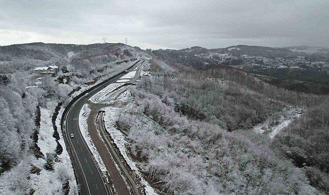 Zonguldak'ta kuvvetli kar uyarısının ardından gece saatlerinden itibaren etkili olan kar yağışı yüksek kesimlerde kartpostallık manzaralar oluşturdu. Havadan görüntülenen Zonguldak-Ereğli kara yolunda gece saatlerinden itibaren tuzlama çalışmaları yapıldı.