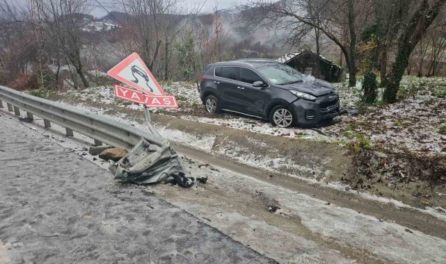 Zonguldak'ta kar yağışının etkili olduğu yolda kontrolden çıkan otomobil, bariyerlere çarpıp ters döndü. Kazada 2 kişi yaralandı.