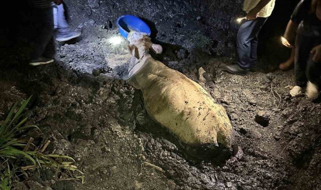 Canlı olarak kurtarılan ineğin, sırt bölgesinde yırtıcı hayvanlar tarafından verilmiş bazı yaralar olduğu da öğrenildi. Tedavi altına alınan hayvanın sağlık durumunun iyi olduğu bildirildi.