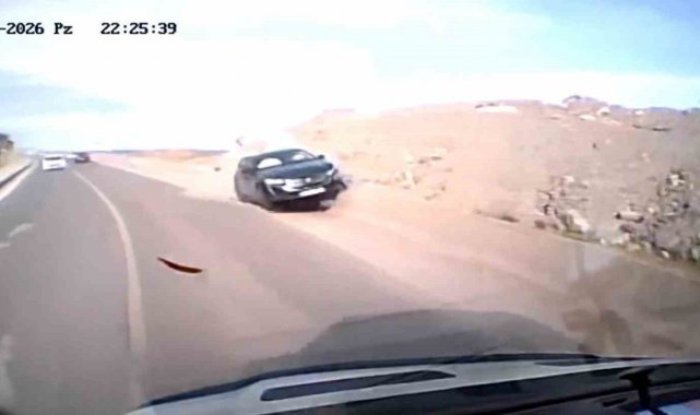 Zonguldak'ın Kilimli ilçesinde kontrolden çıkan bir otomobil direksiyon hakimiyetini kaybederek kaza yaptı. Kaza anı ise başka bir aracın kamerasına yansıdı.