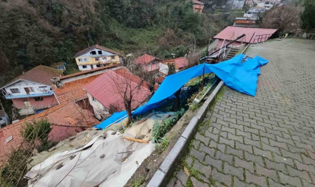 Zonguldak'ta yamaçtan kopan kaya ve toprak parçaları iki evin üzerine devrildi. Olayda şans eseri yaralanan olmazken, evlerin çatı ve duvar kısımlarında maddi hasar oluştu.