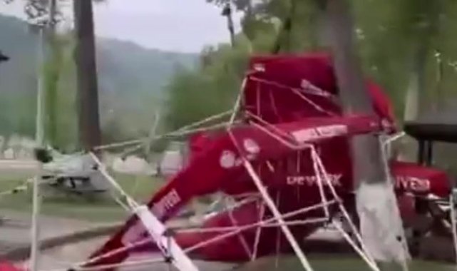 Vatandaşlar rüzgarlı havalarda dikkatli olmaları konusunda uyarıldı. Öte yandan rüzgar sebebiyle Devrek Belediyesi'ne ait tenteler de devrildi.
