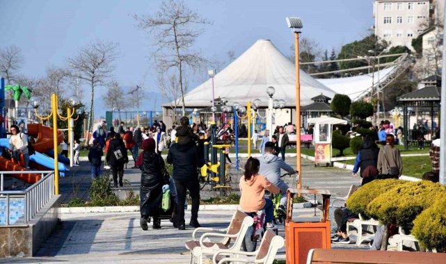 Pazar günü olması nedeniyle sahil bandında yoğunluk yaşanırken, vatandaşlar güneşli havanın tadını çıkardı.