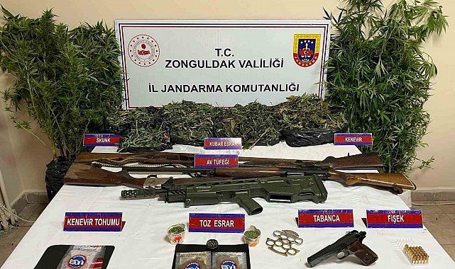 Zonguldak İl Jandarma Komutanlığı ekipleri, Çaycuma ilçesinde düzenlediği uyuşturucu operasyonunda çok sayıda yasa dışı madde ve silah ele geçirdi. Operasyon kapsamında 1 kişi tutuklandı.