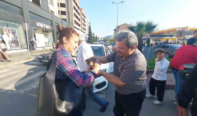 Bu sırada yoldan geçen bir kadın da kediyi kucağına alarak sahiplenerek olay yerinden uzaklaştı. Sürücü de vatandaşlara teşekkür ederek bölgeden ayrıldı.