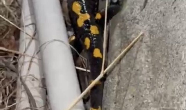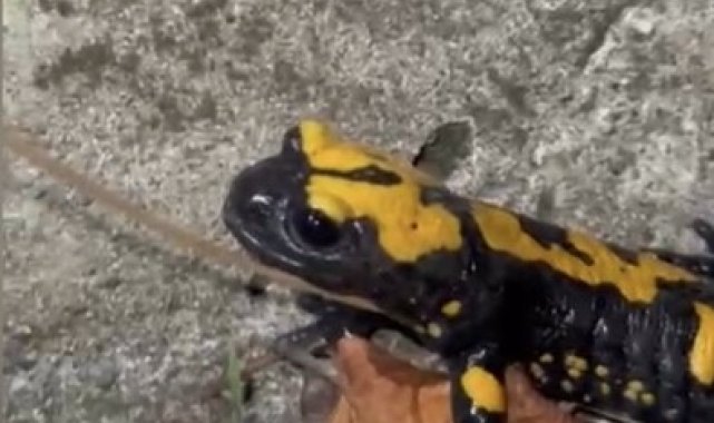 Osmaniye'nin Zorkun Yaylasının renkli misafiri sarı benekli Türk semenderi cep telefonu kameralarına yansıdı.