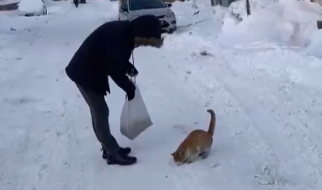 Bingöl'ün Karlıova ilçesinde kar yağışı hayatı olumsuz etkilemeye devam ediyor. İlçede kar yağışı zaman zaman etkili olurken ilçe sakinlerinden Özgür Karadaş, yürekleri ısıttı. Sabahın ilk saatleriyle kalkan Karadaş, marketten aldığı kedi ve köpek mamalarını sokak sokak gezerek, zorlu kış şartları altında yiyecek bulamayan sokak hayvanlarına veriyor.